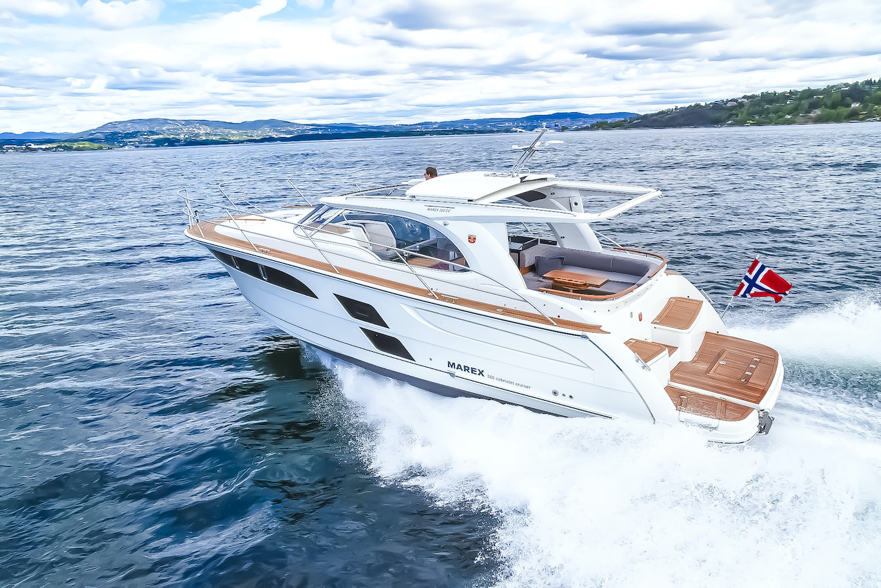 Norjalainen Marex on tunnettu käytännöllisistä ja tyylikkäästi viimeistellyistä perhe- ja matkaveneistä, joiden tilankäyttö on tehokasta ja yksityiskohdat kekseliäitä. Venemessuilla nähdään Marexin lippulaiva 375 kiinteällä takaseinällä varustettuna versiona sekä vuosi sitten markkinoille lanseerattu 360 Cabriolet Cruiser.