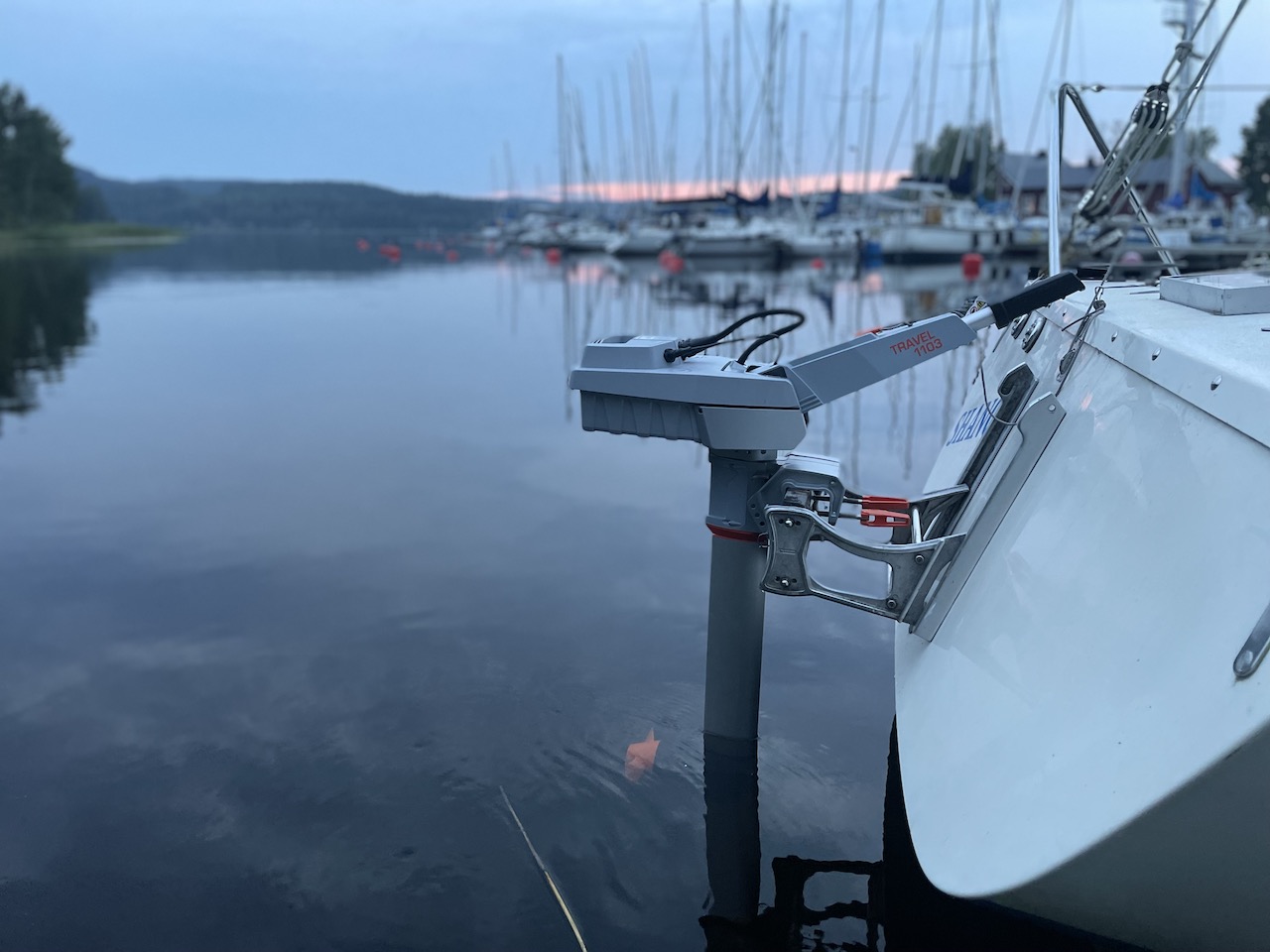 Testasimme Torqeedoa noin 1,3 tonnin painoisessa veneessä, jossa on tähän saakka käytetty apumoottorina viiden hevosvoiman bensamoottoria. Vaikka vene olikin perämoottorin tehoon nähden hieman iso, toimi Torqeedo rantautumispuuhissa erinomaisesti. Lisäksi kokeilimme Torqeedoa miehistön kanssa noin 600 kiloisessa Lightning-veneessä. Isommassa veneessä vauhti oli täydellä kaasulla vajaat neljä solmua. Puolella kaasulla vene kulki vajaata kolmea solmua ja käyttösäde kaksinkertaistui. Kevyemmässä veneessä Torqeedo näytti kykynsä, vauhti nousi viiteen solmuun ja puolella kaasullakin mentiin neljää solmua. Erityisesti pidemmällä reissulla Torqeedon suorana pitävä rikin lukitusmahdollisuus oli hyvä lisä. Lisäksi ohjauskahvan GPS-yhteys piti käyttäjän jatkuvasti ajan tasalla nopeudesta ja jäljellä olevasta akkukapasiteetista, ja siitä kuinka pitkälle akulla vielä pääsee.