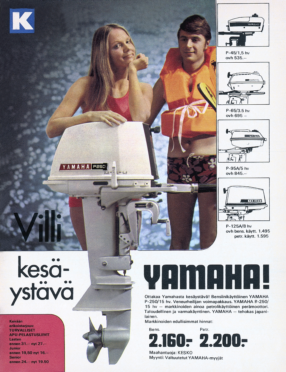 Seuraavana vuonna Suomessa myytiin 146 petrolikäyttöistä Yamaha P-125 -perämoottoria. Tehoa siinä oli täydet kahdeksan hevosvoimaa.