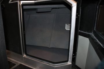 Jos alkaa ramaista, löytyy tuulilasin alla olevien luukkujen takaa pistopunkat. Muita saatavilla olevia mukavuuksia ovat muun muassa helposti aurinkotasoksi tai vuoteeksi pedattavat sohvat, pentterimoduuli ja toiletti. Suunnittelussa on ollut mukana maineikas hollantilainen designstudio Vripack.