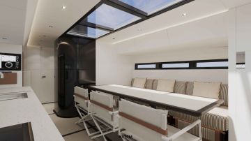 Rungossa käytetään hiilikuitua, mutta termodynaamiset epoksihartsit ovat kierrätystavaraa. Apumoottorit ovat sähköiset ja virtaa niiden akustoille syöttävät hydrogeneraattoreina toimivat pod-moottorit. Vaikka luonnoksissa ei näy kansilla aurinkopaneeleja, niille on tilaa samasta syystä, kuin liikkuminen ulkona on harvinaisen helppoa: riki ja purjeet eivät vaadi köysistöä ja haruksia, joten kansitilat ovat ennätyksellisen puhtaat.