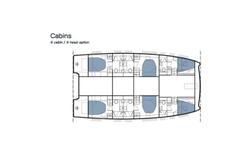 Sellaiset on jokaiseen kajuuttaan erikseen myös muissa sisustusratkaisuissa, ja sitä on harvoin nähty. Enimmillään kuusi kajuuttaa on saatu kahteen runkoon niin, että takimmaisista noustaan perän avotilaan, keskimmäisistä salonkiin ja keulimmaisista etukannelle omista ovistaan. Kaikki kajuutat on varustettu omilla toileteilla eikä niissä tarvitse sietää naapureiden läpi- tai edes ohikulkua.