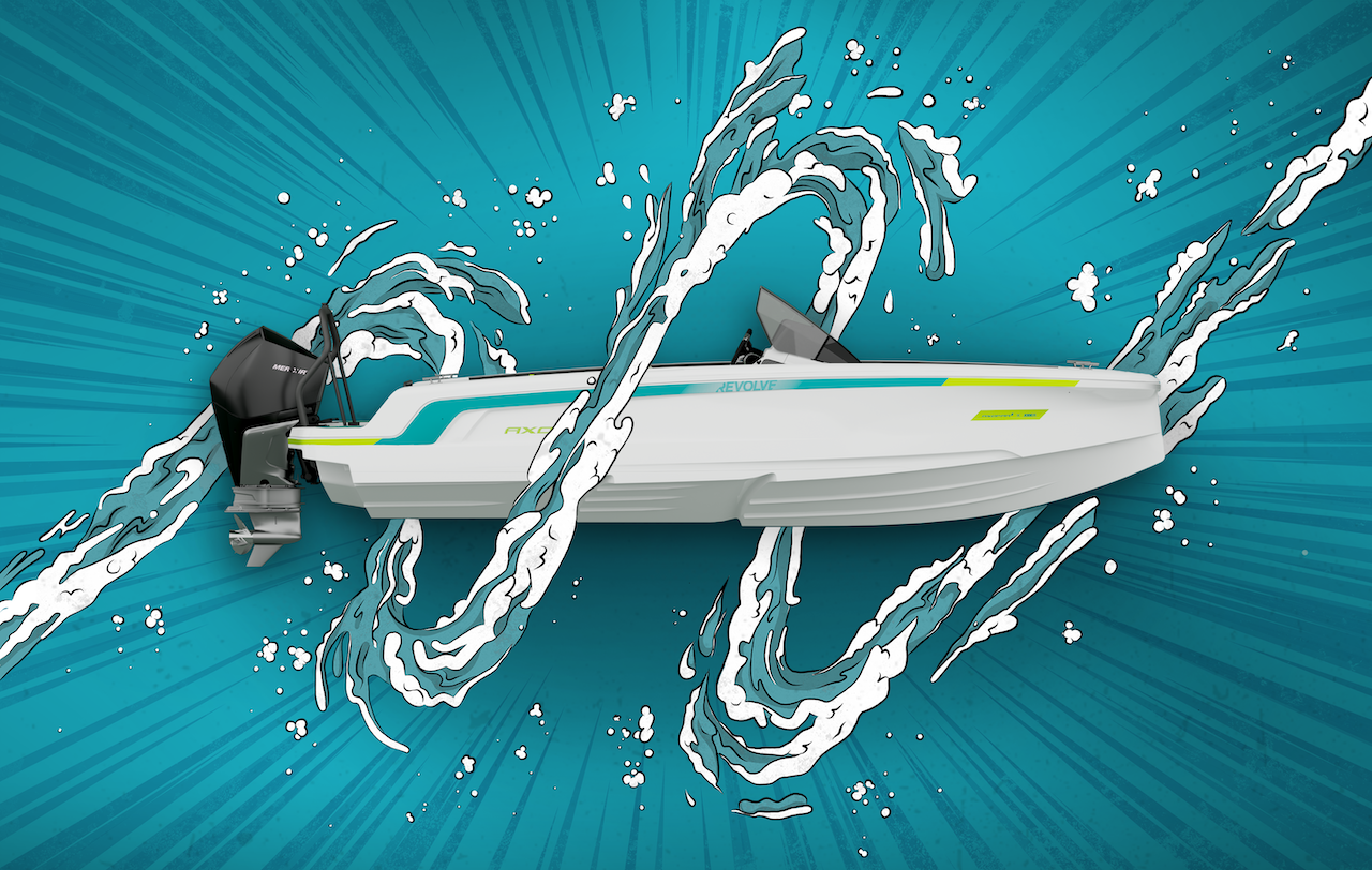 Vaikka Axopar 22 Spyder esitellään virallisesti vasta marraskuun lopulla, pukkaa siitä jo Joben kanssa yhteistyössä kehitettyjä erikoismalleja. Niistä ulkoisesti hillitympi on Revolve, jossa valkoiseen runkoon on lisätty Joben neonvihreitä ja turkooseja koristeita. Räväkämmässä Revolve XXII:ssa on sitten jo kokoturkoosi värigelcoat ja täysikokoinen runkoteippaus.