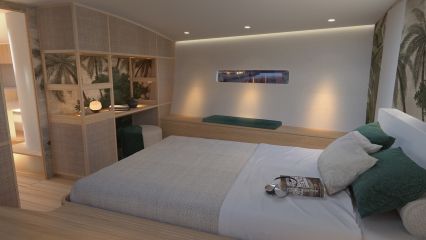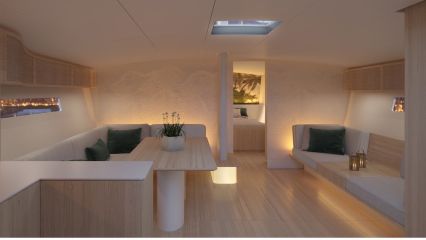 Kuten ilmastoinnista voi päätellä, vene ei ole mikään munkinkammio sisustukseltaan. Sisätilat ovat modernit ja mukavat vaikka päivän kisojen reposteluun kavereiden kanssa. Javier Jaudenesin piirtämä vene on reilut 20 metriä pitkä ja 5,5 metriä leveä, ja menee tuotantoon näillä näppäimillä. Ensimmäiset veneet toimitetaan omistajilleen kesällä 2021.