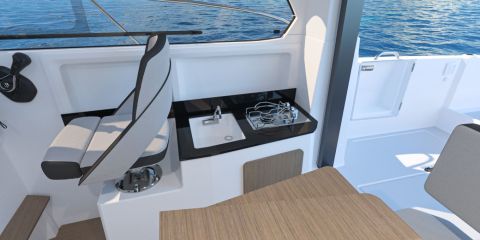 Moottorin sivuille ulottuvat lisäuimatasot poimitaan edelleen lisävarustelistalta, mutta styyrpuurin laidan avattava laitaportti on uudessa mallissa vakiona. Ohjaushytin ympärikuljettavuus on entistä voimakkaammin epäsymmetrinen. Molemmat sivukannet ovat laidan korkeudella, mutta styyrpuurin väylä on leveämpi ja helppokulkuisempi.