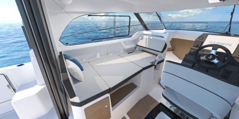 Sisälle tilaa on tehty entistä korkeammalla rungolla ja keulakajuutan katolla. Toiletti on entistä suurempi, ja sen voi varustaa uudessa mallissa suihkulla. Keulan paapuurin laitaa mukaileva parivuoteen jatkeena on nyt salongin dinetin alle työntyvä pistopunkka.