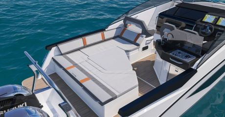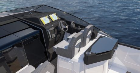 Perämoottoreita on aina kaksi, yhteistehoa saa olla enintään 700 hevosvoimaa. Kuvissa on Suzukit, mutta Suomen maahantuoja kauppaa Beneteaut edustamillaan Yamahan koneilla varustettuina paketteina.