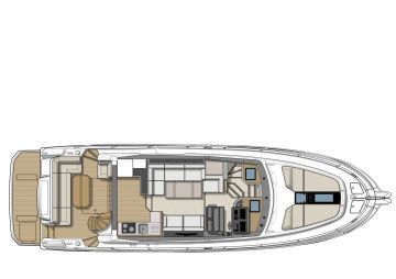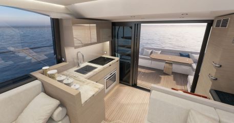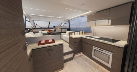 Sisätiloissa on niin ikään uusi ilme, mutta varsinaista tilaratkaisua on rukattu vain paikoin. Esimerkiksi kansisalongin ja majoituskannen tilajärjestelyt ovat pääpiirteittäin edeltäjän kaltaiset. Se tarkoittaa takapentteriä sekä kolmen makuukajuutan ja kahden toiletin kokonaisuutta, jossa omistajan sviitti on keskiveneessä ja saksivuoteella varustettu vipvieraskajuutta keulassa.