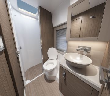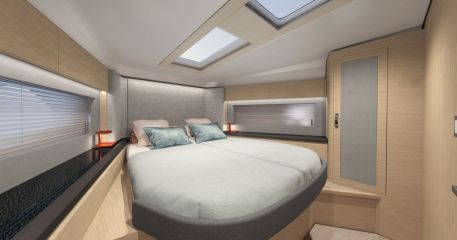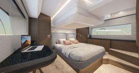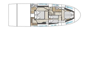 Styyrpuurin laidalla olevassa kolmannessa makuukajuutassa ei tarvitse enää tyytyä kerrosvuoteeseen, vaan käytössä on erillisvuoteet. Omistajankajuutassa on sisään käveltävä vaatehuone sekä superjahtimaisesti vuoteen taakse jatkuva toiletti. Perään saa lisävarusteena yhden hengen miehistöhytin.
