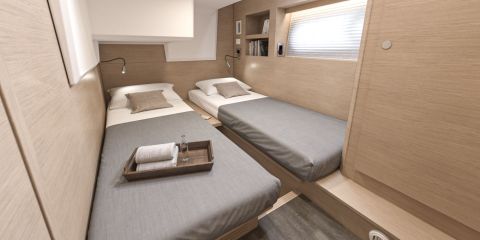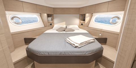 Majoituskannelta löytyy edelleen kolme kahden hengen makuukajuutta ja kaksi suihkukaapilla varustettua toilettia. Omistajan sviitti on perinteiseen tapaan keulilla ja vieraskajuutat rinnakkain keskiveneessä. Niistä styyrpuurin puoleinen on varustettu nyt poikittaisella parivuoteella ja paapuurin puoleinen entiseen tapaan kahdella pitkittäisellä erillisvuoteella. Kaikissa kajuutoissa on isot vaatekaapit. Viiluksi voi valita joko tiikin tai optiona tammen.