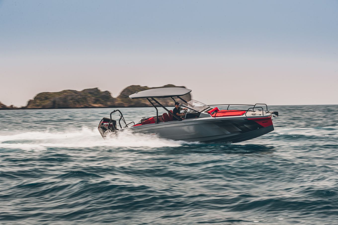 Veneissä Brabuksen lähtökohdat ovat Axopareissa. Metodit ovat simppelit: jätetään runko ja tilaratkaisut ennalleen, mutta lisätään tehoa ja ylellisyyttä. Näillä eväillä 9-metrisestä Axopar 28:sta jalostui Brabus Shadow 500 ja 11-metrisestä Axopar 37:sta Brabus Shadow 900. Nyt on vuorossa kahdeksan metriä pitkään Axopar 25:een perustuva Brabus Shadow 300, joka tuo saksalaisen luksusbrändin traileriveneiden luokkaan.