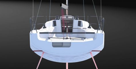Vene on niin nykyaikainen kuin voi vain kuvitella. Sen kiilamainen runkomuoto, taaksepäin kenottava keula, bulbiköli ja lattapääisopurje ovat kuin tehtyjä avotuulilasketteluun. Veneessä on myös pinnalla ohjatut tuplaperäsimet, ettei ote pääse lipeämään kovemmassakaan menossa.