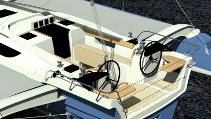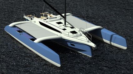 Kokonaispituudeltaan 11,55-metrinen ja leveydeltään 8,12-metrinen kolmirunkovene on käynyt läpi kahden ja puolen vuoden suunnitteluprosessin. Veneen pikkusisko 32 ja isonen 40 ovat näyttäviä ja menestyneitä veneitä, joten uudella mallilla on melkoiset odotukset niskassaan.