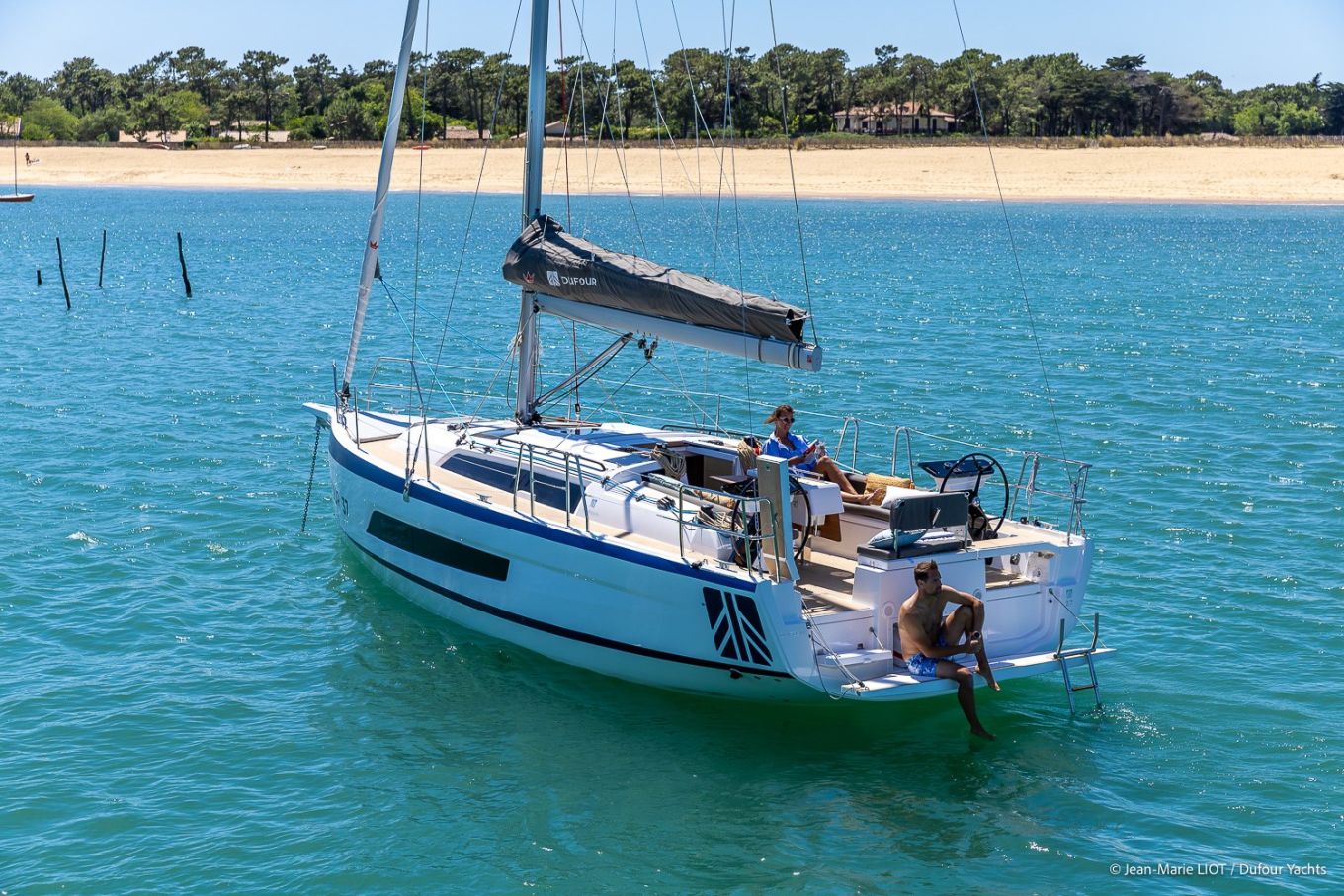 Dufour ei kuitenkaan ole myymässä veneitää muotoilua ja ainutlatuisuutta korostaen, vaan lupaamalle veneen ostajalle pätevimmän mahdollisen paketin, joka täyttää suurimman osan toiveista. Kokonaispituudeltaan 10,77-metrisestä veneestä runkoa on 9,99 metriä ja sen suurin leveys on 3,8 metriä. Alustavat tiedot kertovat vakiokölin uivan 1,9 metrissä ja veneen painavan noin 6,5 tonnia, josta kölipainoa 1 860 kiloa.