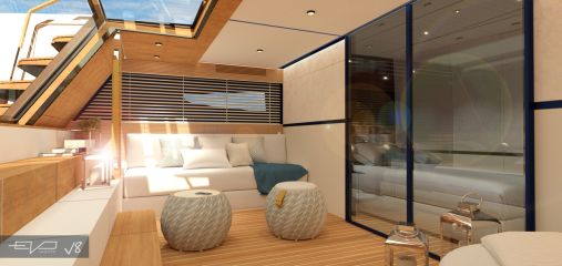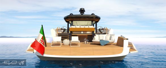 Napolista kotoisin oleva italialaisveistämö Blu Emme Yachts on julkistanut Evo-malliston uuden lippulaivan. Mallimerkinnällä V8 varustetulla 24-metrisellä jahdilla veistämö pyrkii käynnistämään uuden aikakauden venesuunnittelun ajattelussa.