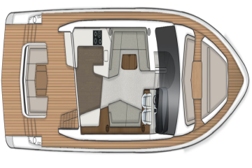 Peräkannen kalustus on muokattavissa eri tilanteisiin sopivaksi. U-sohva aukeaa joko keulaa tai perää kohti ja erilaiset välimuodotkin ovat mahdollisia.