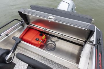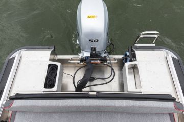 Perässä moottorikaivon molemmilla puolilla on selkeät astuinpinnat tarjoavat uimatasot sekä uutena yksityiskohtana niiden vieressä avonaiset köysilokerot. Keulaan johtaa puolestaan veneen rakenteisiin integroidut entistä avarammat vetoputket, joka mahdollistavat entistä helpomman ja runsaamman elektroniikkalaitteiden asennuksen keulaan.