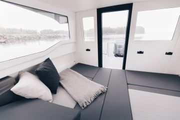 Hytin takaosaan saa muodostettua poikittaisen parivuoteen. Sivupenkkien selkänojat toimivat näppärästi vuoteen täytepatjoina. Lisävarustelistalta löytyy tavanomaista enemmän retkimukavuuksia, kuten jääkaappi, makeavesijärjestelmä, keitin ja verhosarja.
