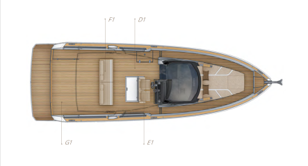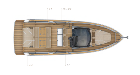 Ulkonäöllisesti yksi X-sukupolven Fjord-mallien selkein ero edeltäjiin on korkeampi tuulilasi ja oleellisesti entistä suurempi T-top. Muutoin ollaan tutuilla linjoilla, joita monet ovat kopioineet: Fjord kuuluu modernien T-top-veneiden muotokielen uranuurtajiin.