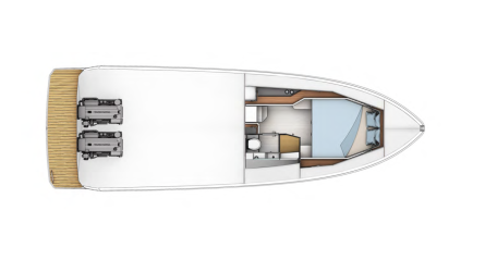 Kannen alla on parivuoteella varustettu kajuutta sekä suihkukomerolla varustettu toiletti. Satunnainen yöpyminen on sallittu, mutta eiköhän tämä(kin) Fjord-pari mene ennemmin päiväristeilyjen ja vaikkapa illallisen cocktail-etkoilujen alustaksi kuin yöpymiskäyttöön.