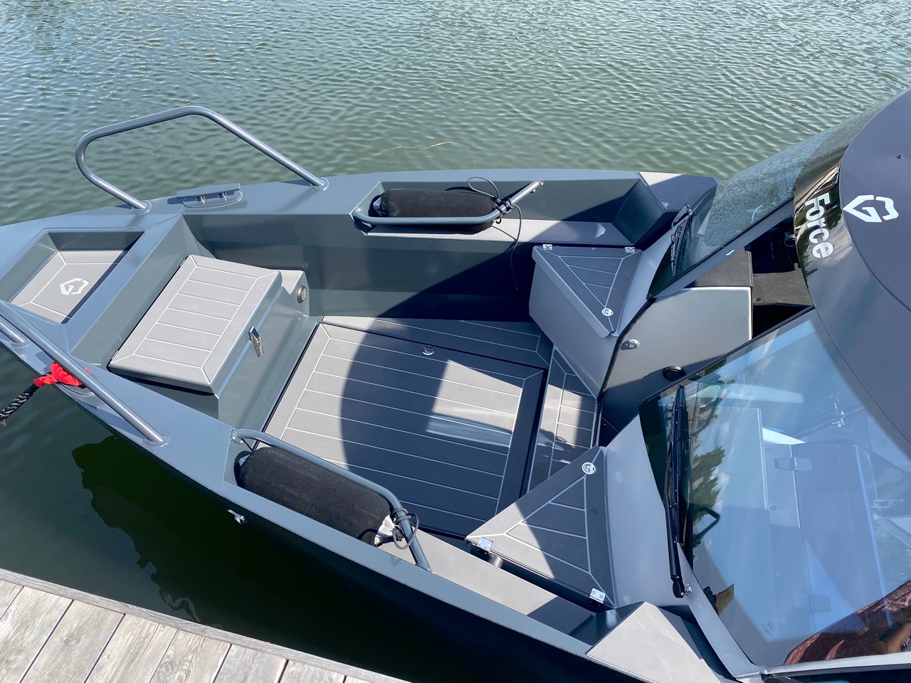 G-Force 8 on niin sanotusti täysalumiinivene eli nousulistattoman rungon lisäksi myös kansi ja hytti on hitsattu alumiinista. Hytin ja rungon välissä on elastinen kumilista. Rakenne parantaa hytin äänieristystä etenkin runkoäänien osalta.