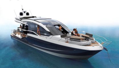 Galeonin Skydeck-konseptiin kuuluu sisäohjaamon ja -salongin lasikatto, josta suuri osa on avautuvaa kattoluukkua. Sen myötä flybridge on huomattavasti kompaktimpi kuin varsinaisissa Flybridge-malleissa. Skydeckin kattaminen käy kätevästi napin painalluksena, minkä seurauksena lamellikate liukuu varustekaaren alta esiin ja paikalleen.