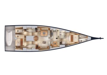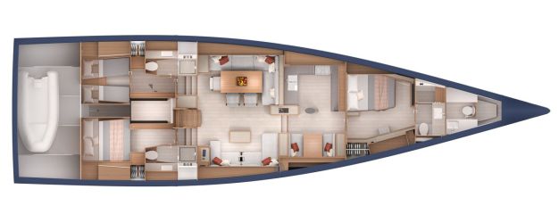 Lähtökuvassa ja tämän tekstikapaleen alla olevassa kuvagalleriassa esiintyvä GS 65 Long Cruise on sukua valmistajan liukkaammille kisaveneille, mutta selvästi enemmän matkapurjehdusorientoituneemmalle asiakaskunnalle räätälöitynä. 65:nen on ulkonäöltään hyvin samankaltainen 72-mallin kanssa. Kummassakin on suuri ruffi ja avotila sekä laaja tasainen kansi keulassa ja ruorien takana.