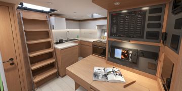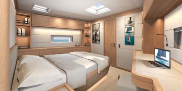 Kajuutoiden määrä ja niiden varustelu ovat tyypillisesti asioita, joita tutkitaan kunkin asiakkaan kanssa erikseen, Grand Soleil kertoo. Samoin kalusteiden ja laipioiden värit ja materiaalit.