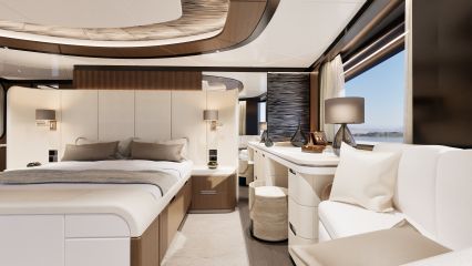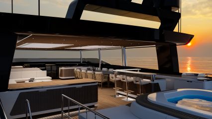 Coupé-versiossa on pitkä katto, jonka avattavat luukut paljastaa baarilla ja porealtaalla varustetun aurinkokannen. Molemmissa malleissa on myös beach club perässä, jossa on alas taittuvat laidat ja hydraulinen uimataso.