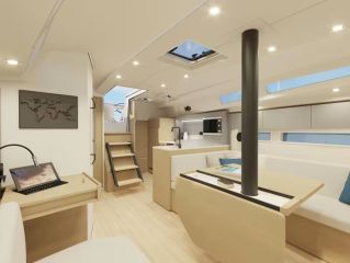 Päälle päin ST-versio erottuu lähinnä puoliläpäisevillä kalvoilla päällystetyistä runkoikkunoista sekä mustiksi anodisoiduista kaiteista. Sisälle on tuotu värimaailmaan voimakkaampia kontrasteja ja hienoisia viilauksia muotoiluun, mutta tilajako on pidetty ennallaan. Omistajankajuutan keulassa saa omalla toiletilla tai ilman, peräkajuuttoja on yksi tai kaksi, L-pentteri ja suuri toiletti sijoittuvat portaiden molemmin puolin ja tilava salonki jatkuu siitä eteen päälaipioon asti.