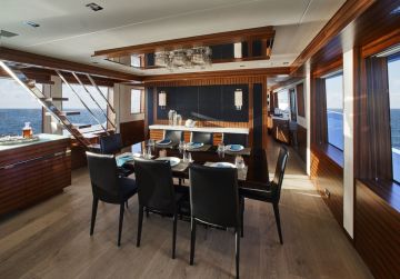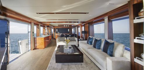 Kansitasolla huomio kiinnittyy paapuurin sivulle aukeavaan parvekkeeseen sekä huikealle maisemapaikalle sijoitettuun pentteriin, jonka yhteydessä on dinetti. Monessa eurooppalaisessa superjahdissa suunnilleen samoille sijoille on sijoitettu nykyisin omistajankajuutta.