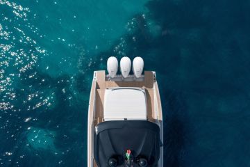 Itse vene on moottoriratkaisua lukuun ottamatta ennallaan. Se tarkoittaa, että myös TT420S-perämoottoriversiosta löytyy 2,1-metrisen kumiveneen mentävä tenderitalli ja näppärä saksivuode, joka muuttaa keulahytin kalustuksen käden käänteessä parivuoteesta V-sohvaksi. Tyylikkyyttä on ”riittävästi”, Invictusit ovat tyylitaituri Christian Granden kynästä syntyviä taiten viimeisteltyjä designtuotteitta.