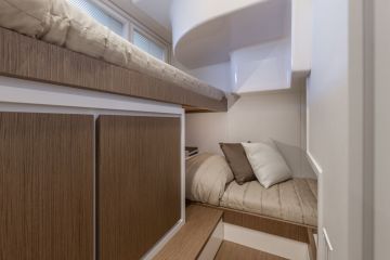 Avotilan tilaratkaisu on ennallaan, mutta pöytä on nyt lakattua tiikkiä. Myös sisutuksen tyyliä on päivitetty, mutta tilaratkaisun osalta ainoastaan toilettimoduuli on uusi. Tilaratkaisuja on tarjolla entiseen tapaan kaksi. Keulaan sijoitetun mastersviitin oheen voi valita joko pienemmän salongin ja vieraskajuutan tai tilavamman salongin.