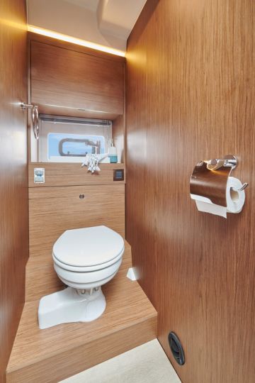 Toinen matkaveneilymukavuutta korostava tilaratkaisu on wc:n ja suihkun sijoittaminen eri tiloihin ja omien oviensa taakse. Näin ollen suihkussa käynti ei este wc:n käyttöä.