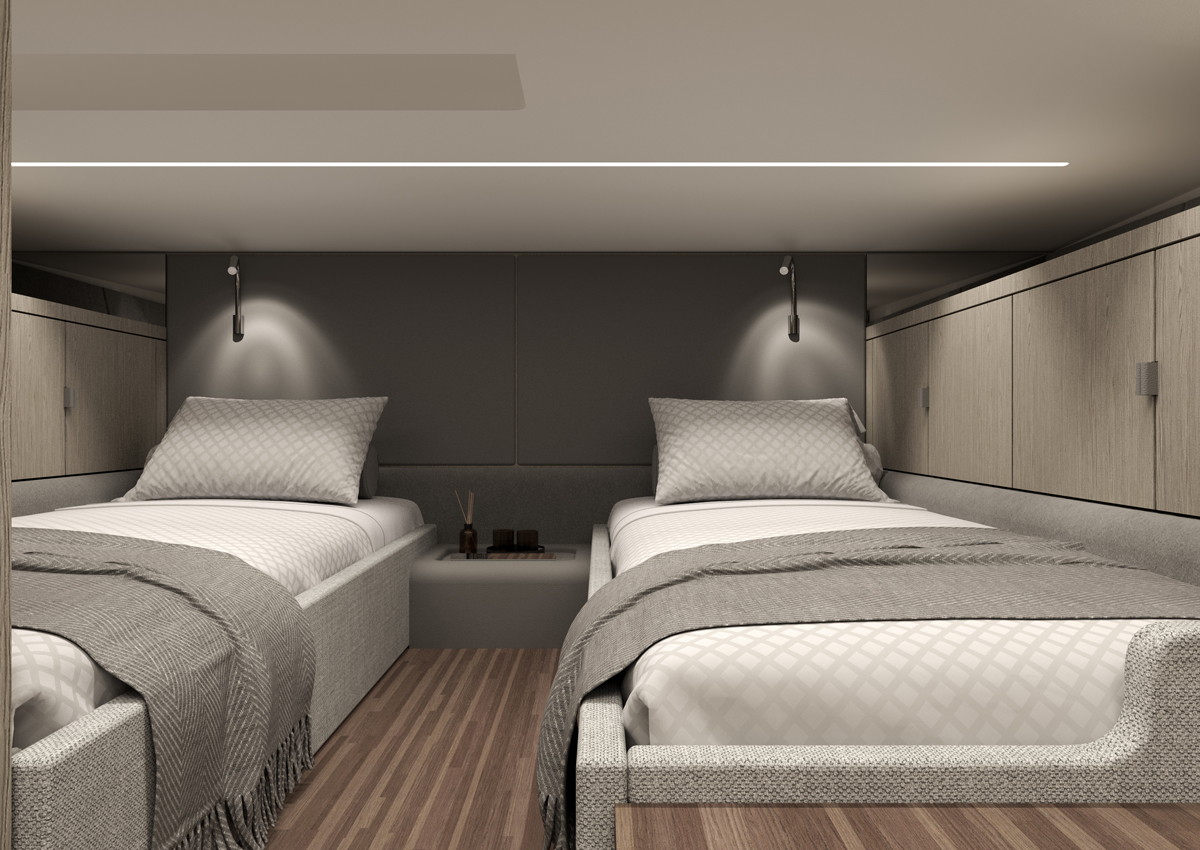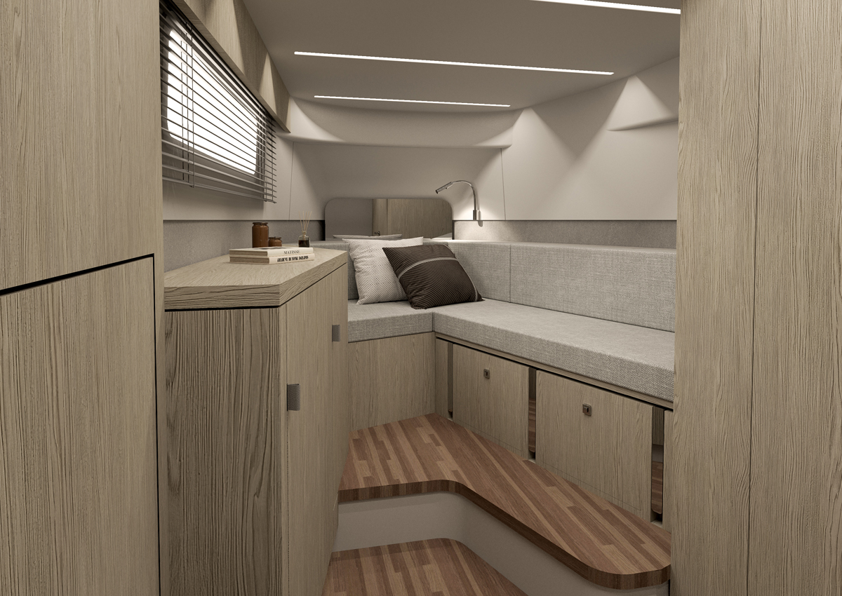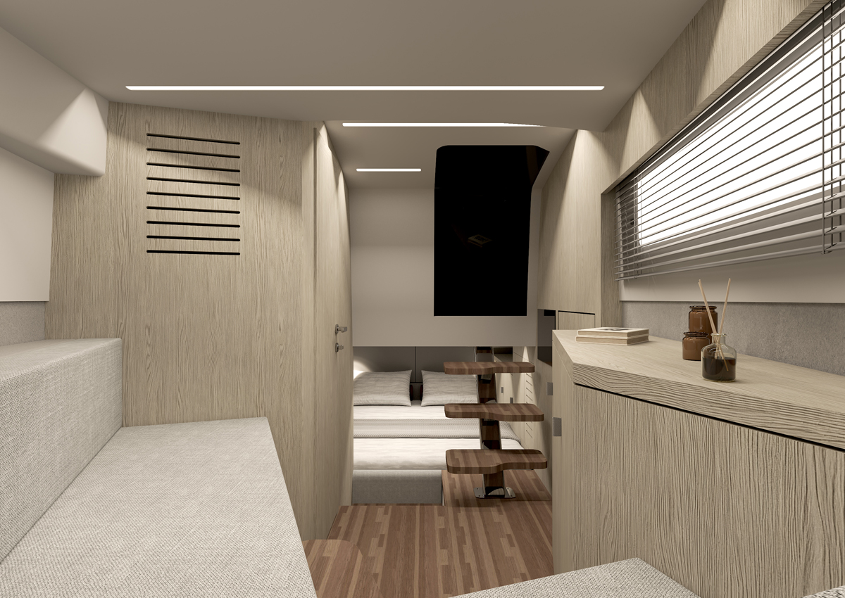 Majoituskannella on molemmissa malleissa neljä vuodepaikkaa, jotka jakaantuvat keula- ja keskikajuuttaan. Niiden välissä on toiletti, jossa suuremmassa MP12:ssa on myös erillinen suihkukomero.
