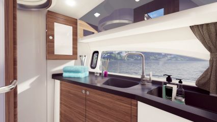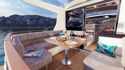 Marexilta on toivottu mallia, jossa olisi takaseinällä suljettu kansisalonki ja ohjaamon sivuliukuovi, mutta myös iso ja seurallinen avotila. Tässä se tulee.