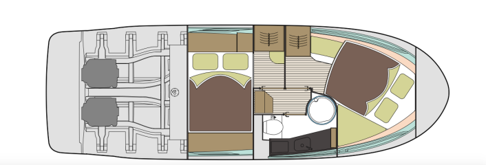 Valinnat jatkuvat neljällä moottorivaihtoehdoilla. Singlenä on tarjolla 440- tai 480-hevosvoimainen Volvo Penta D6, ensin mainittu DPI-vetolaitteen ja jälkimmäinen akselivedon ja V-vaihteen kera. Parikoneasennukseen voi valita 220-hevosvoimaiset Volvo Pentan D3:t tai 270-hevosvoimaiset Mercuryn V6-dieselit. Jälkimmäisten mukana tulee aina Axius Premium -joystick.