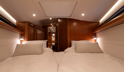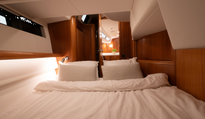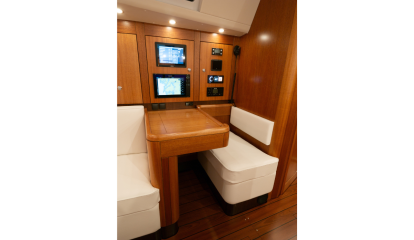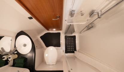 Najad kutsuu tätä AC-takaohjaamoa karibiatyyliseksi, vaikka kyse on kyllä ihan tavallisesta tuplaruorein varustetusta istumakaukalosta, jollaisia on lähes joka veneessä. Toki Najad ei olisi nimensä veroinen ilman merkille tunnusomaista kiinteää tuulilasia. Laatuveneen Najadista tekevät sen lukuisat harkitut yksityiskohdat ja valmistajalle tyypillinen pyöreä muotoilu.