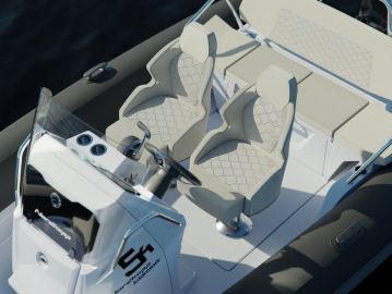 Tilat vaikuttavat 5,5-metristen rib-veneiden luokassa hyviltä ja kalustevaihtoehtoja on runsaasti. Etukannella voi valita pelkän kaulatuhdon tai täydentää sitä aina aurinkotasoon saakka. Ohjaamoon voi valita erilliset kuppipenkit tai rinnakkain istuttavan satulapenkin, ja takakannelle kapeamman tai täysleveän sohvan.