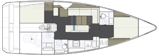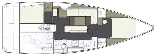 Ovneissa on aina nostoköli. Niin tässäkin mallissa. Köli ylhäällä veneen syväys on vain 0,98 metriä ja evä alhaalla kynnetään 2,88 metrissä. 11,2-tonnisessa veneessä on painolastia 2,6 tonnia, josta 1150 kiloa kölissä.