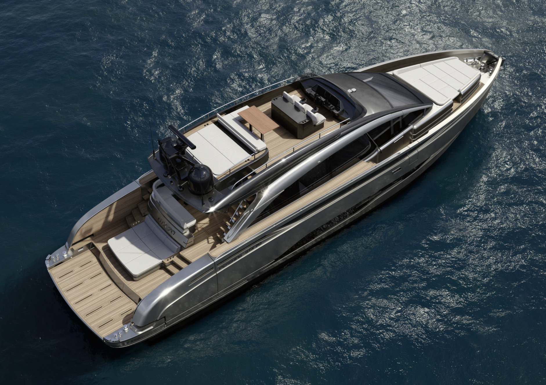 Hiljattain veistämö tiedotti laskeneensa vesille ensimmäisen GTX 70:n Porto Fanossa, Italiassa. Vaikka jahti on sisarusparven pienin, riittää sillä – ainakin suomalaisesta näkökulmasta – kokoa ja näköä: pituutta on 21,88 metriä ja leveyttä 5,42 metriä.