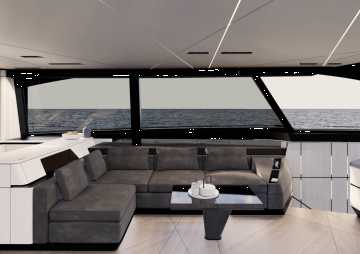 Perän ulkoalue on varustettu tilavalla C-muotoisella sohvalla ja pöydällä. Samoin kuin GTX80-mallissa, ulko- ja sisäoleskelutilat voidaan joko yhdistää tai erottaa toisistaan nostettavan lasiseseinän avulla.