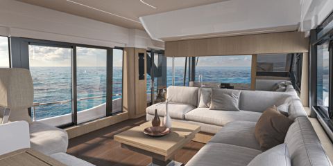 Kansisalongissa kulmasohvan sivut on venytetty sekä veneen leveys- että pituussuunnassa lähes yhtä pitkiksi, mikä uudistaa sisätilojen geometriaa. Pentterikin on pikemminkin poikittain kuin pitkittäin. Styyrpuurin sivukannelle johtava liukuovi on sijoitettu ohjaamon sijaan sen taakse, millä on myös vaikutusta tilojen flow’hun.