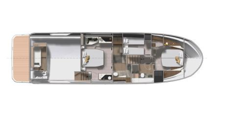 Majoituskannella on tavanomaiset kolme makuukajuuttaa ja kaksi tai kolme toilettia. Keskiveneen sviittiin on oma kulkuportaikko suoraan kansisalongista. Vieraskajuutat jäävät keulan puolelle. Peräpeiliin on saatu mahdutettua valinnainen miehistöhytti.