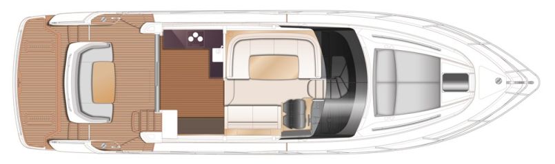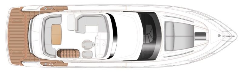 Tilavassa konehuoneessa on kaksi Volvo Penta 600-hevosvoimaista D8:sia, jotka ovat käynniltään ja ominaisuuksiltaan teholuokkansa hienostuneimmasta päästä. Moottorit on yhdistetty IPS-vetolaitteisiin väliakseleilla, joten Princess on vetolaitaratkaisusta huolimatta halunnut pitää kiinni moottorien perinteisiä akselivetoisia malleja vastaavasta sijainnista ja sen tuomasta painojakaumasta, jolla on puolestaan ilmeisen suotuisat vaikutuksensa ajo-ominaisuuksiin.
