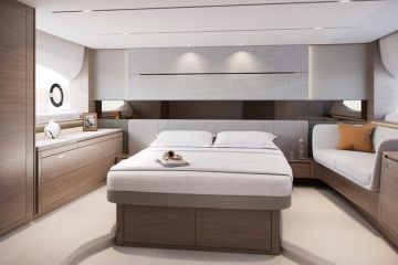 Majoituskannelta löytyy kolme makuukajuuttaa, joista omistajan sviitti on sijoitettu keskiveneeseen. Keulakajuuttaan saa joko kiinteän parivuoteen tai saksivuoteen, jonka puoliskot on liikutettavissa yhteen tai erikseen. Kolmas, kerrosvuoteilla varustettu kajuutta on styyrpuurin puolella.
