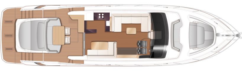 Pääkannen tilaratkaisu vaikuttaa toimivan jouheasti. Pentteri on luontevalla paikalla kansisalongin ja avotilansohvaryhmän välissä, joten tarjoilu sujuu molempiin. Kansisalongin ja avotilan välinen lasiseinä avautuu myös pentterin kohdalta, joten sisä- ja ulkotilat sulautuvat varsin saumattomasti yhteen. Komentosillalla on Princessin tapaan kaksi erillistä, nahkaverhoiltua mukavuusistuinta.