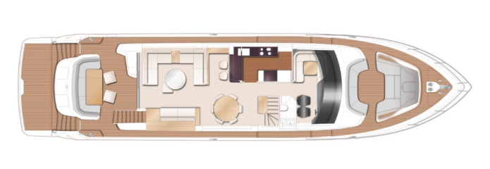 Pääkannella keskitytään oleskeluun, sekä ulko- ja sisätiloissa. Jälkimmäisiin kuuluu esimerkiksi baari/aamiaistiski, pyöreä ruokapöytä sekä häpeilemättömästi ylellisyyteen pyrkivä salonki. Peräkannella on kookas sohvaryhmä ja keulakannella vapaamuotoisempaa loikoilu- ja seurustelutilaa.