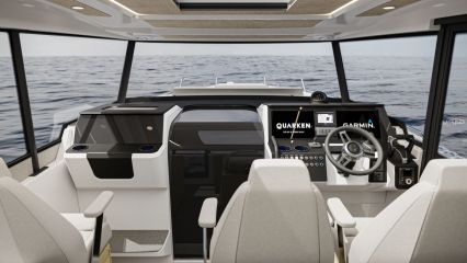 Cabin-tyyppisten katettujen venemalllien suosio on vahvassa kasvussa myös lämpimissä maissa, missä monesti ilmastoituihin sisätiloihin hakeudutaan suojaan auringolta ja kuumuudelta. Silti Quarkenissa on luonnollisesti myös lokoisat ulkotilat.