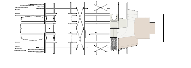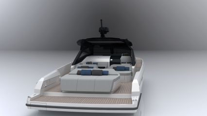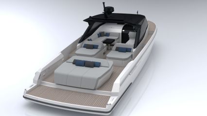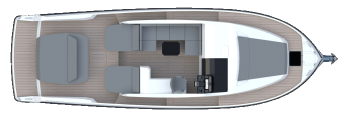 Pääpaino on Välimerelliseen tyyliin kansitiloissa, joista merkittävä osa eli keulan ja perän yhteensä neljä (!) aurinkotasoa ovat taivasalla. Messuille valmistuvassa Sport-versiossa ohjaamo, pentteri ja U-sohva jäävät sentään korkeiden tuuli- ja sivulasien ja katon suojaan.